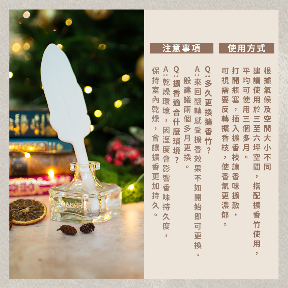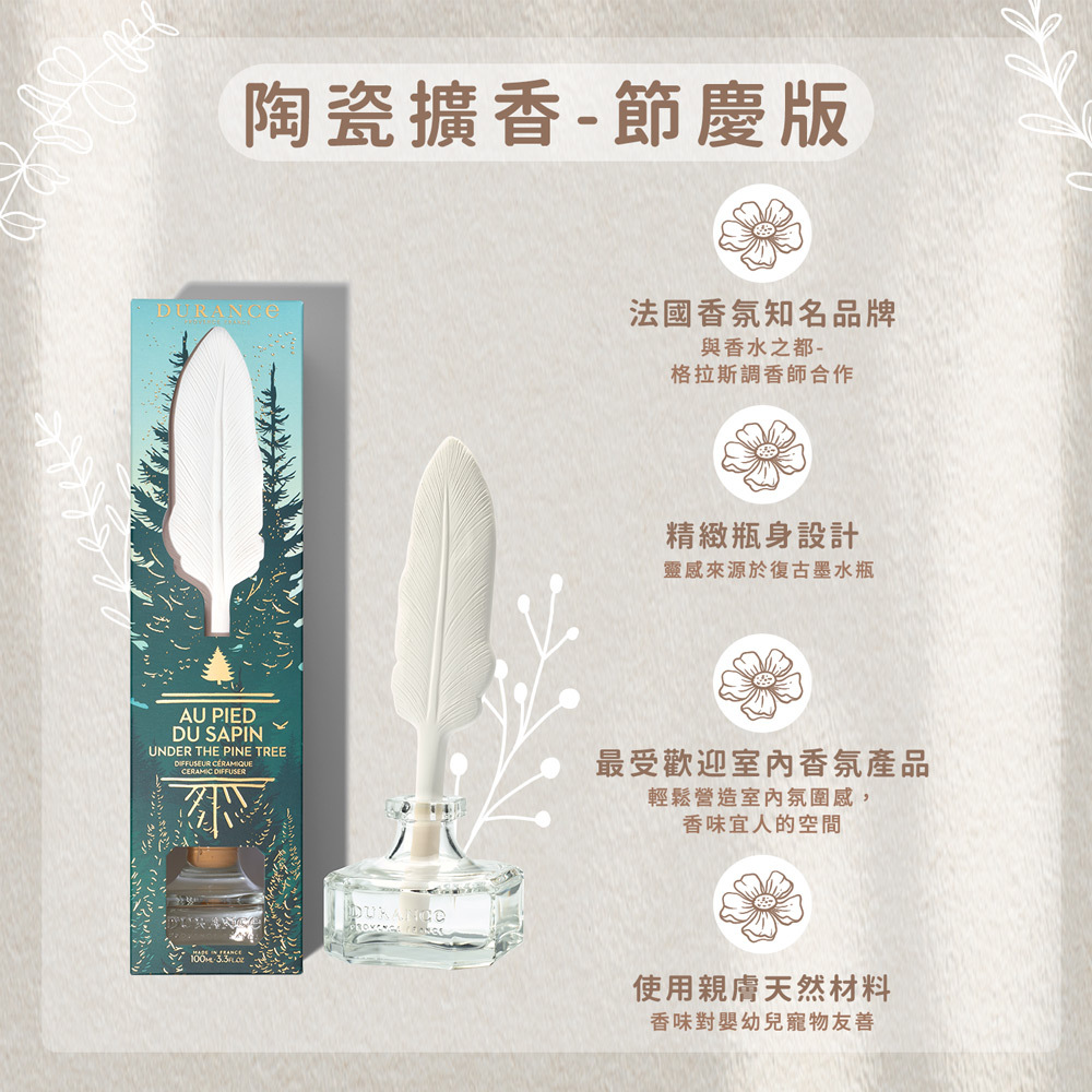復古墨水瓶與羽毛筆設計,精緻優雅 儀式感十足,極細的陶瓷毛孔 讓香味更持久。