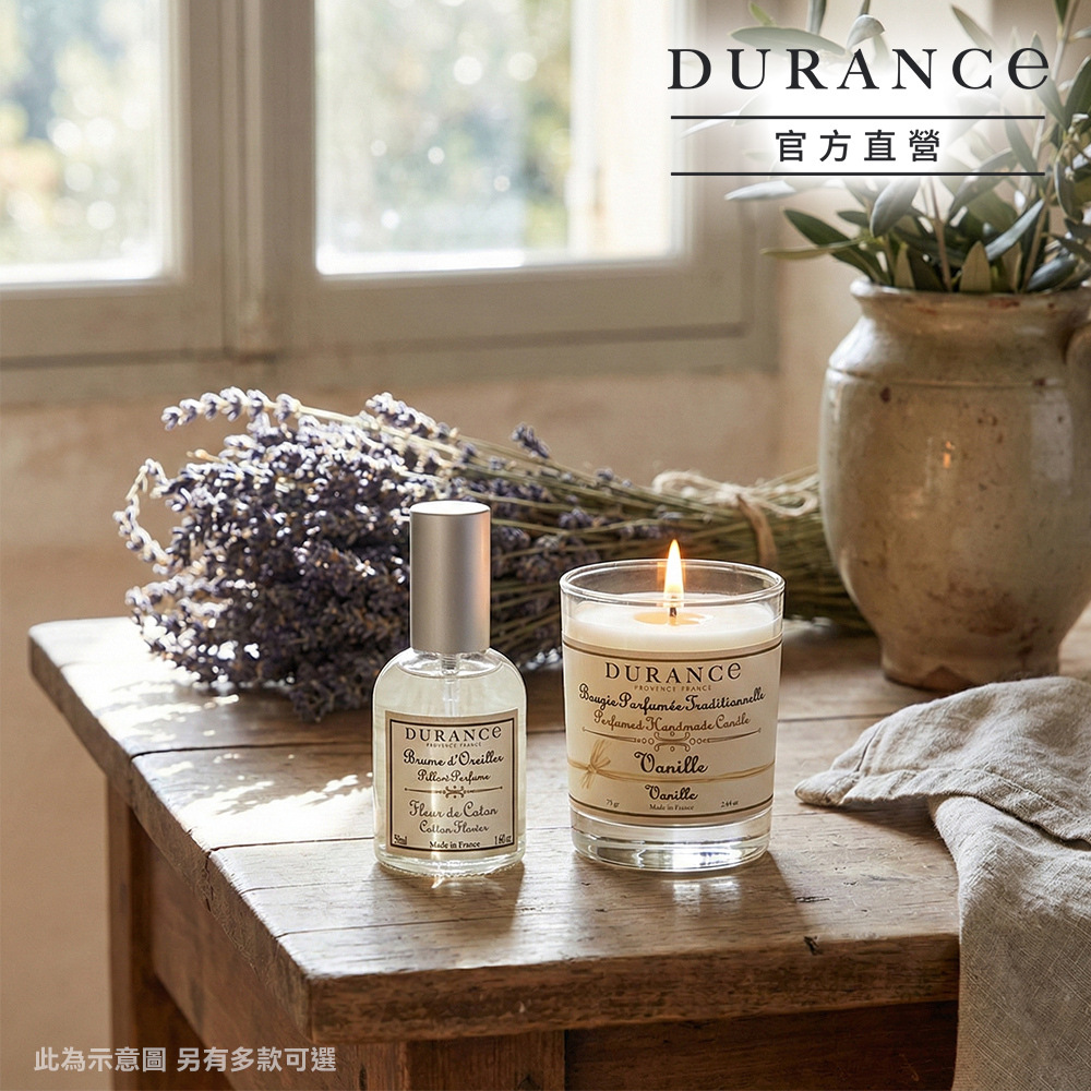DURANCE朵昂思 香氛好眠套組-棉花田枕頭香水+香草蠟燭